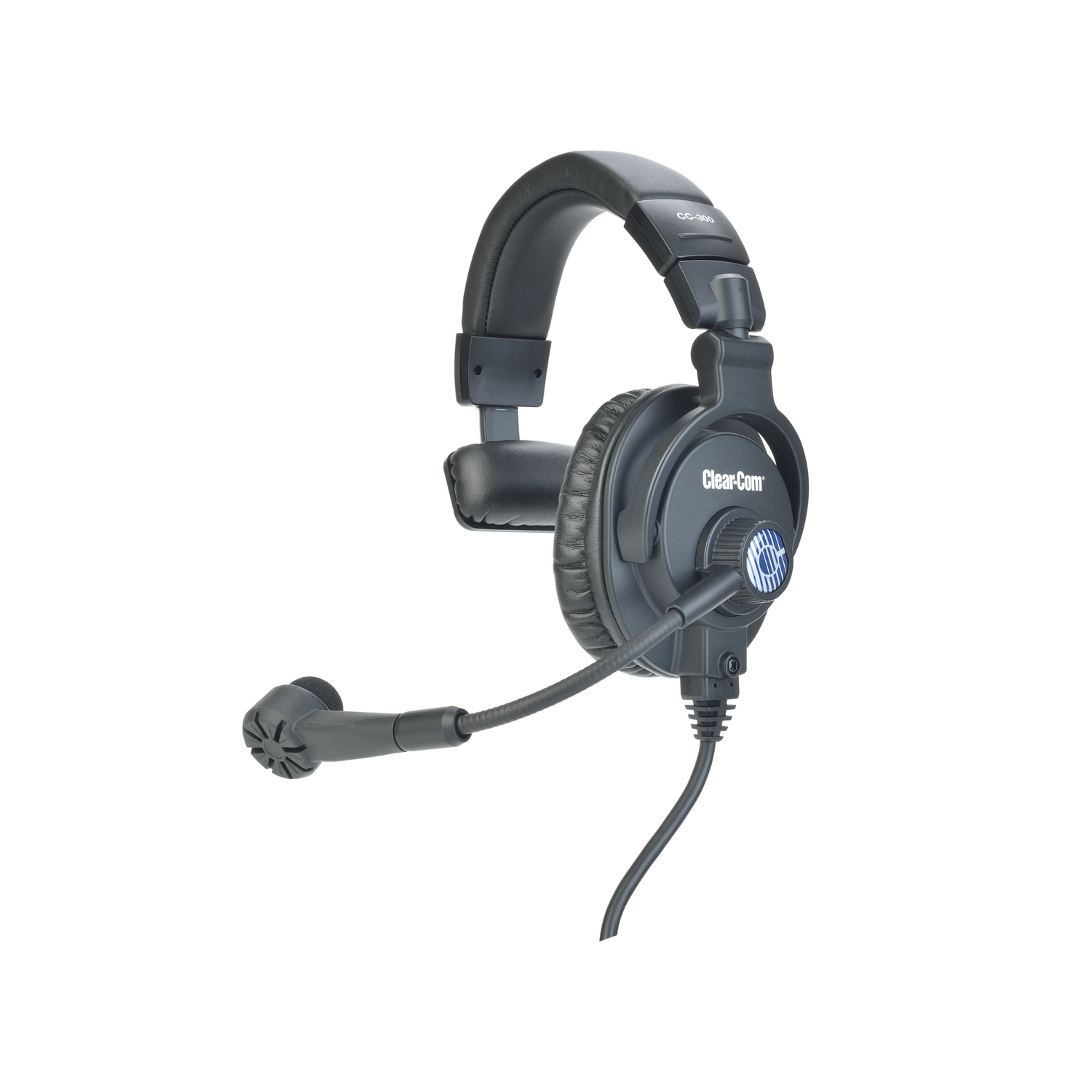 Clear-Com headset with high ambient-noise attenuation headphones and hyper-cardioid dynamic micropho